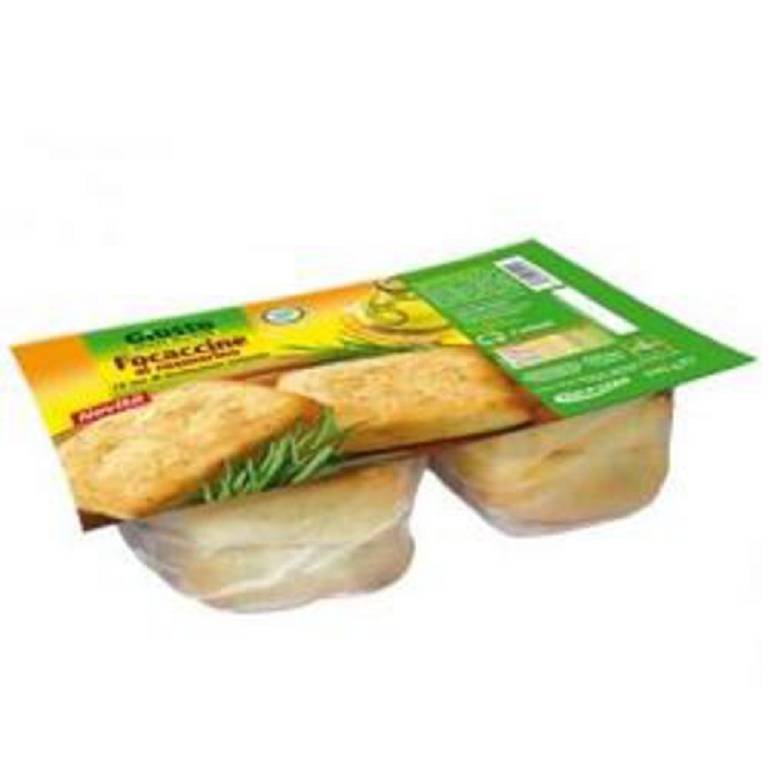 Giusto SENZA GLUTINE Focaccine al rosmarino Focaccine al rosmarino, fragranti e appetitose, con olio extra-vergine di oliva, lievitate naturalmente per 16 ore; senza glutine, senza conservanti, senza grassi idrogenati e ricco in fibre. In confezione salva-freschezza. Prodotto in uno stabilimento che tratta frutta a guscio (noci e mandorle), uova e soia.